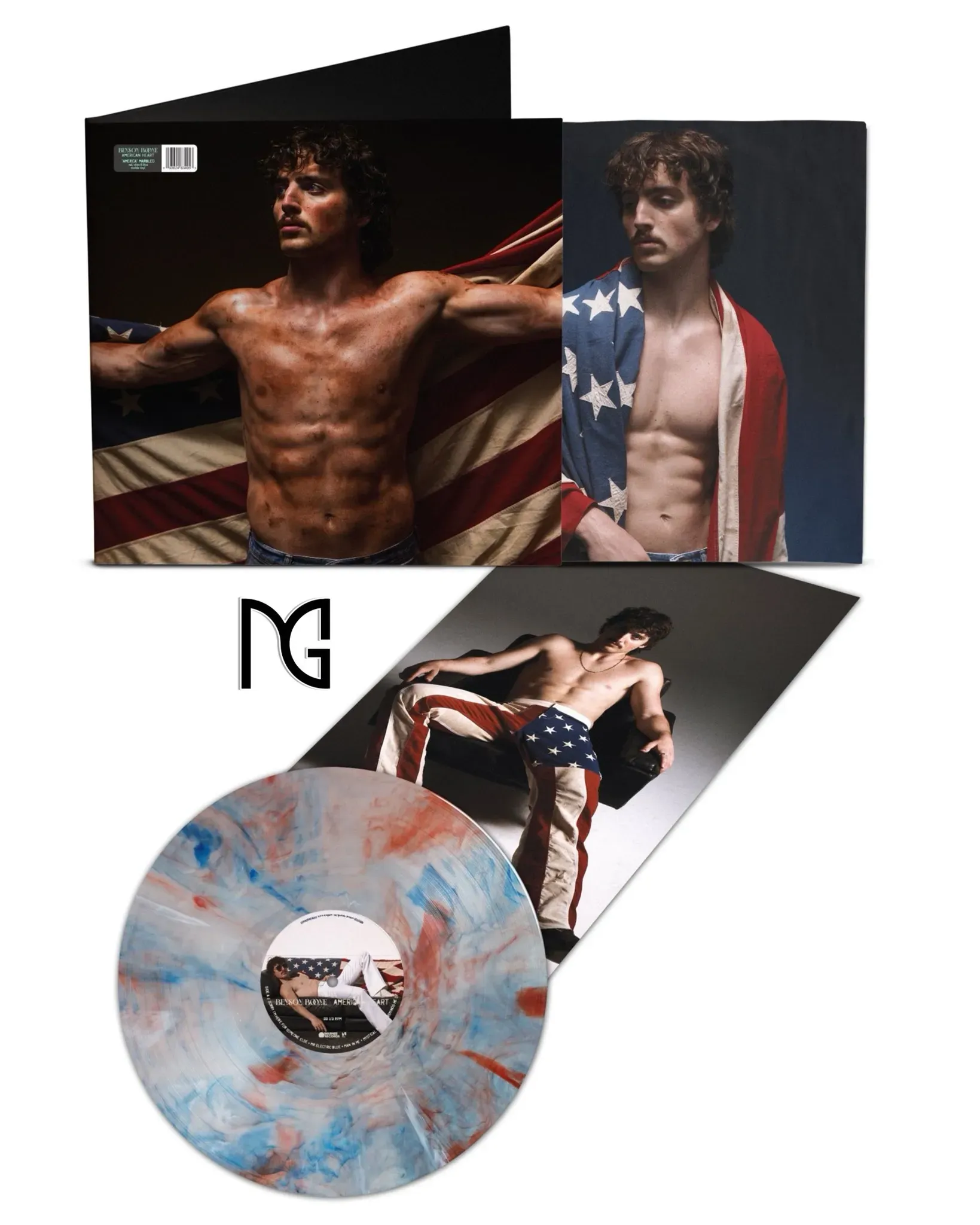 Pre-Orden American Heart Vinyl Red, white and blue marble on translucent clear Edición Limitada Benson Boone